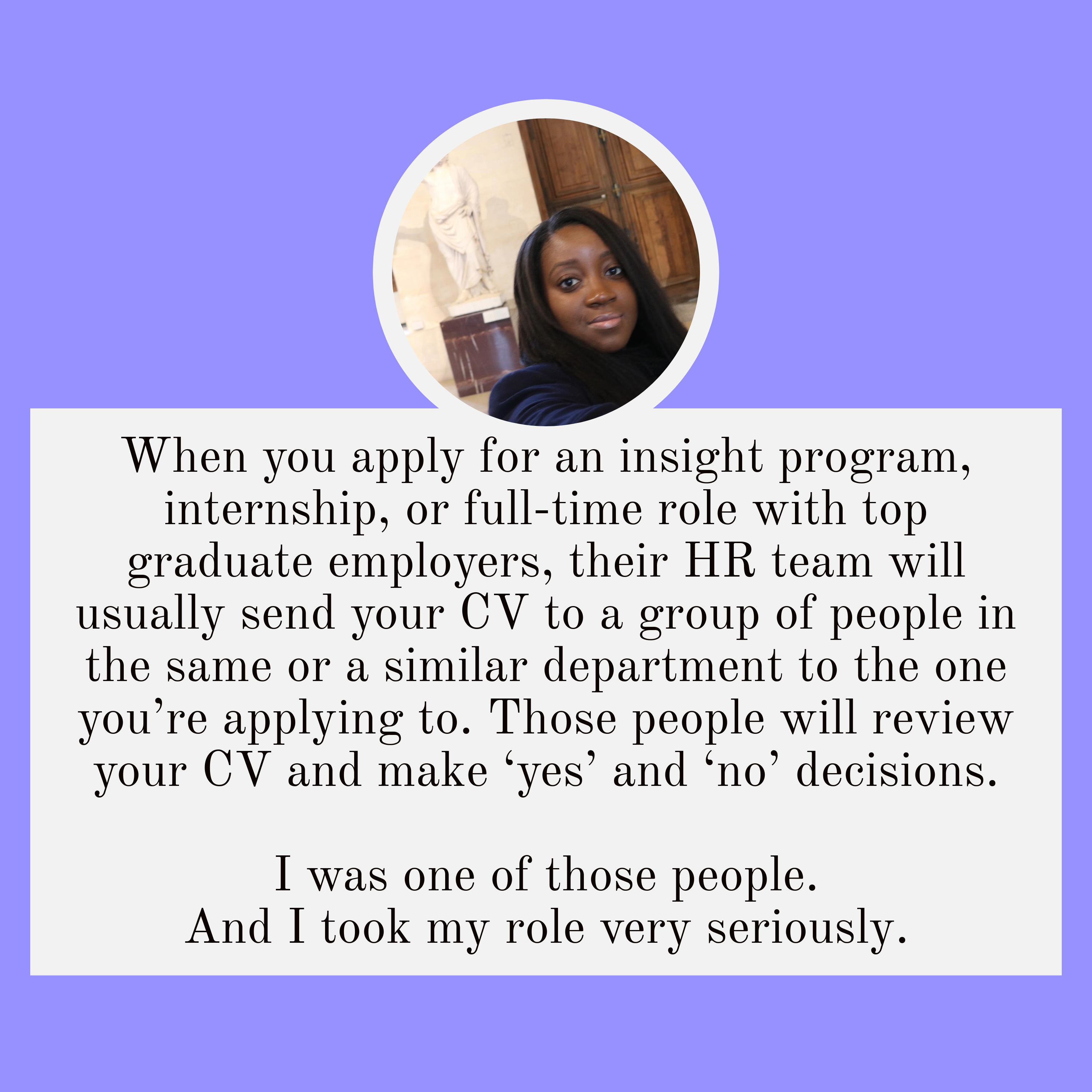 Hence, I've obtained 10+ years of experience helping highly selective graduate employers in the UK and the US (like Morgan Stanley and the World Bank Group) recruit candidates for internships and full-time graduate roles. My role included interviewing and assessing the strengths and weaknesses of each candidate’s CV to decide which ones to reject and which ones to advance to the next round of the application process.